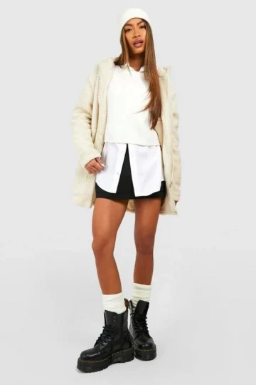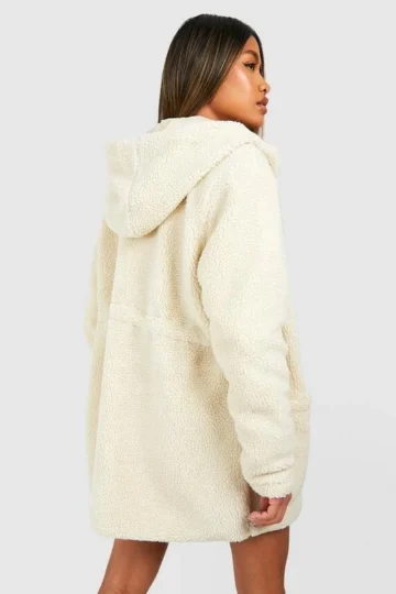 BOOHOO Hooded Teddy Faux Fur Jacket