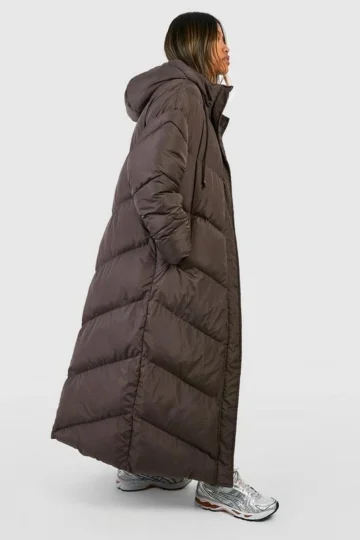 BOOHOO Hooded Quilt Detail Maxi Puffer