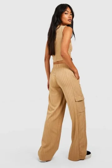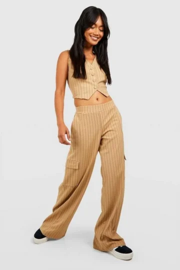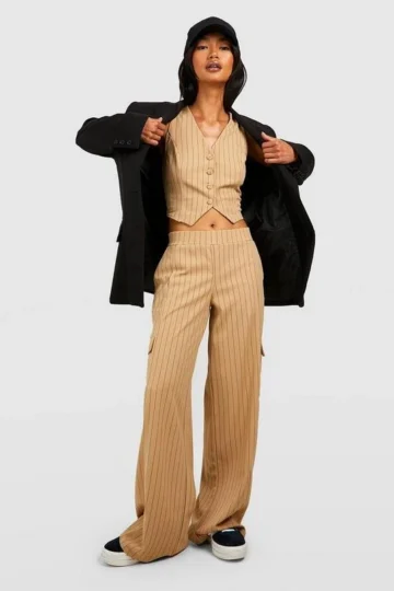 BOOHOO Jersey Knit Crepe Pinstripe Vest & Wide Leg Pants