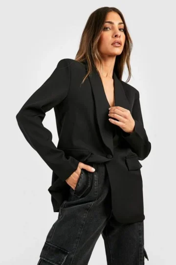 BOOHOO Basic Woven Single Breasted Plunge Lapel Blazer