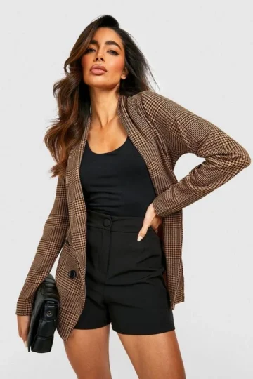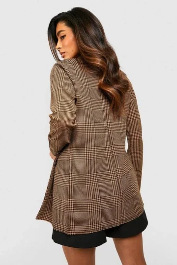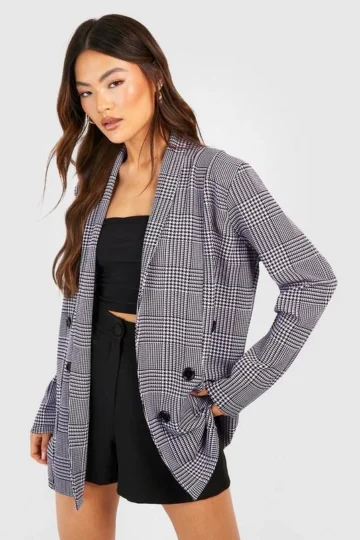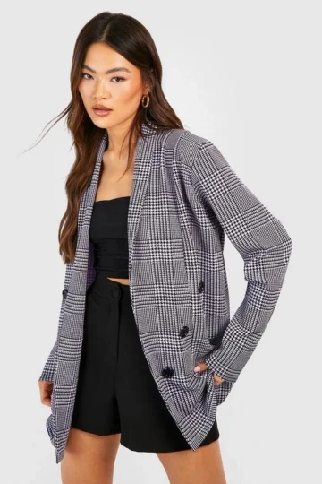BOOHOO Basic Jersey Knit Dogtooth Relaxed Fit Blazer