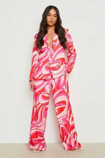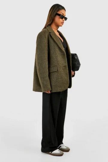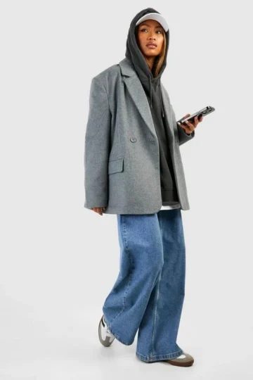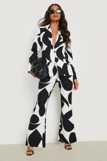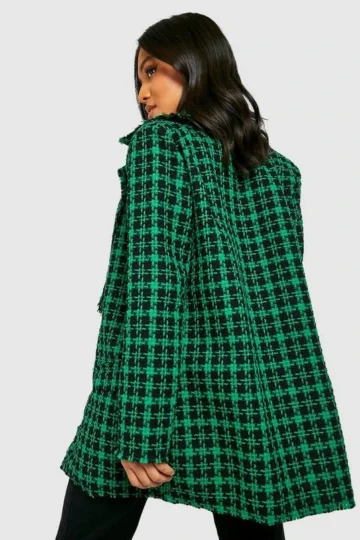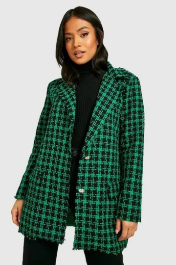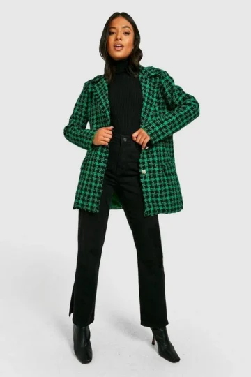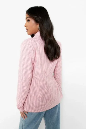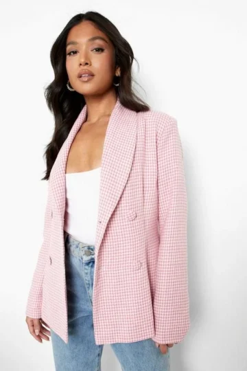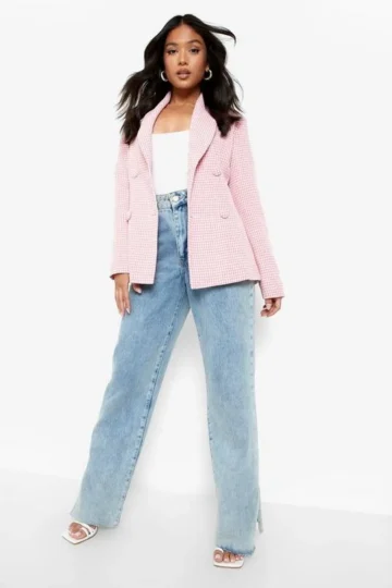 BOOHOO Petite Dogtooth Flannel Double Breasted Blazer