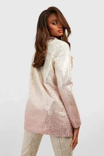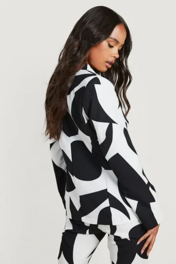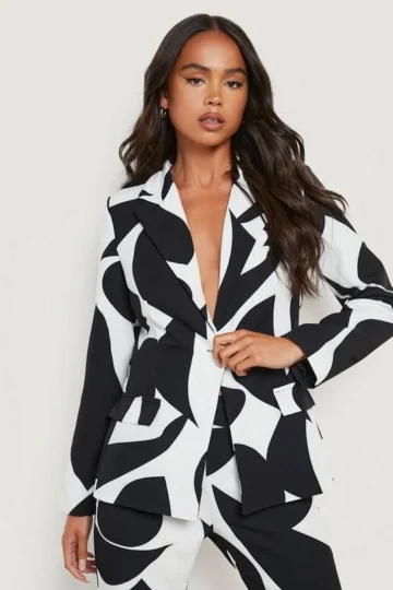 BOOHOO Mono Double Breasted Feather Trim Blazer