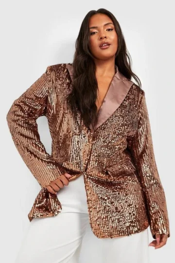 BOOHOO Plus Matte Sequin Oversized Blazer