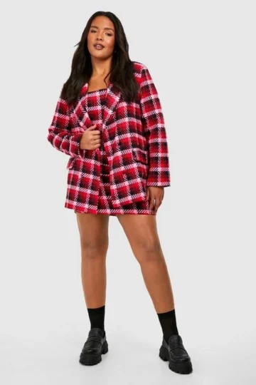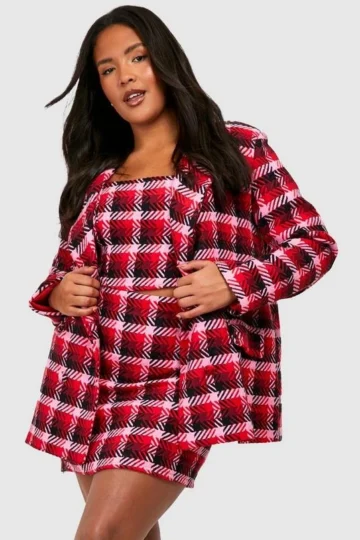 BOOHOO Plus Dogtooth Heavy Weight Blazer