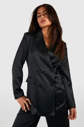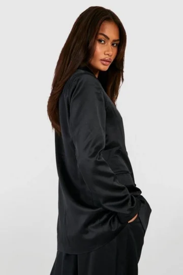 BOOHOO Satin Rhinestone Tailored Relaxed Fit Blazer