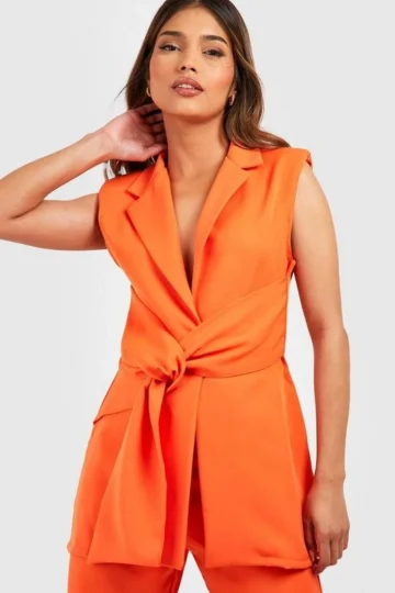 BOOHOO Sleeveless Belted Plunge Front Tailored Blazer