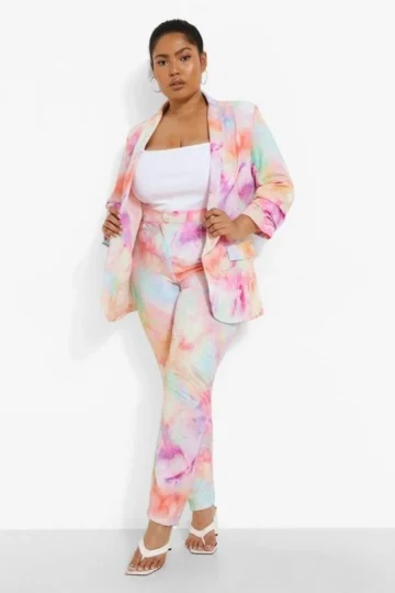 BOOHOO Plus Tie Dye Ruched Sleeve Blazer