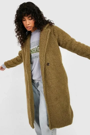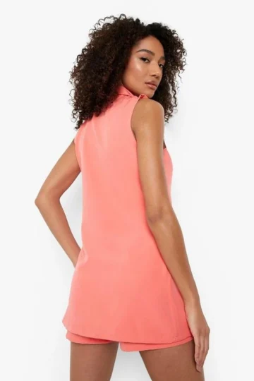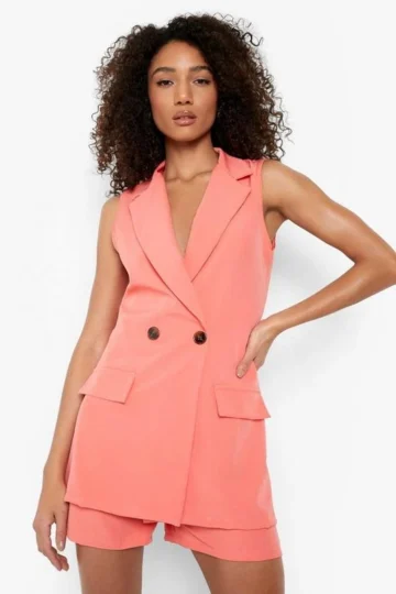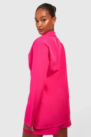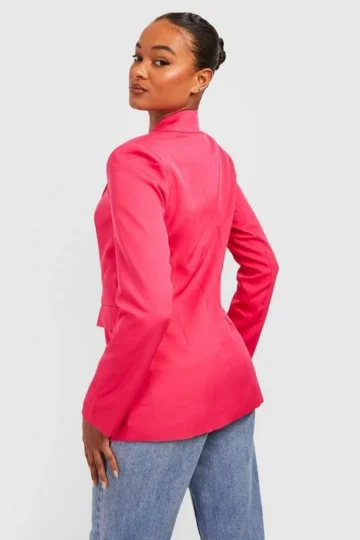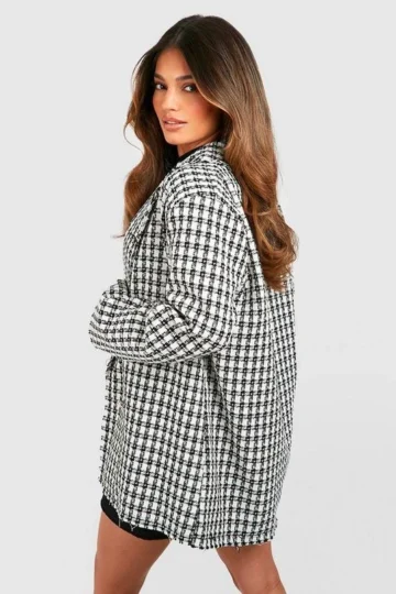 BOOHOO Tweed Flannel Double Breasted Frayed Hem Tailored Blazer