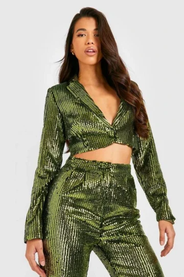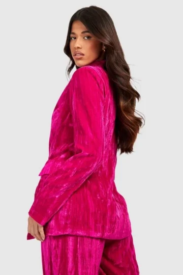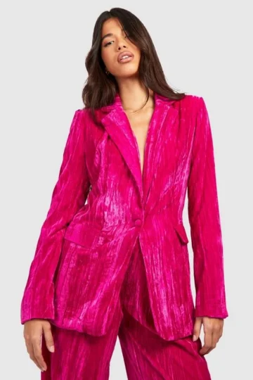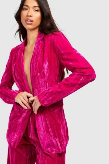 BOOHOO Tall Crinkle Velvet Single Breasted Blazer