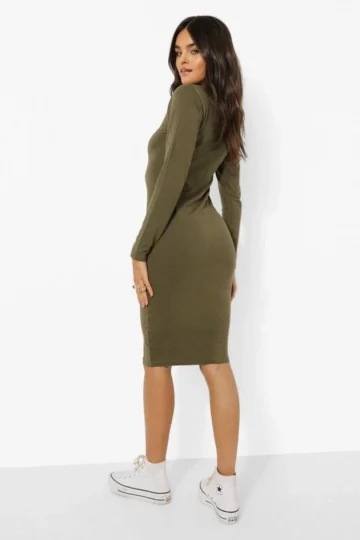 BOOHOO Basics Long Sleeve Turtleneck Midi Dress