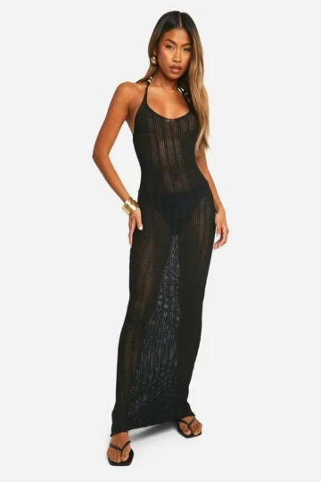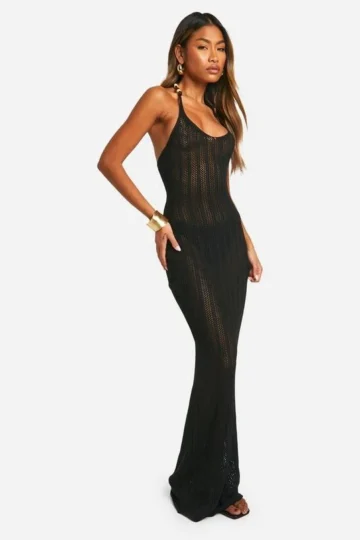 BOOHOO Bead Strap Detail Crochet Maxi Dress
