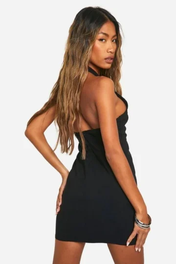 BOOHOO Bengaline And Slinky Mix Plunge Mini Dress