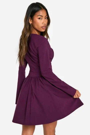 BOOHOO Bengaline Corset Long Sleeve Skater Dress