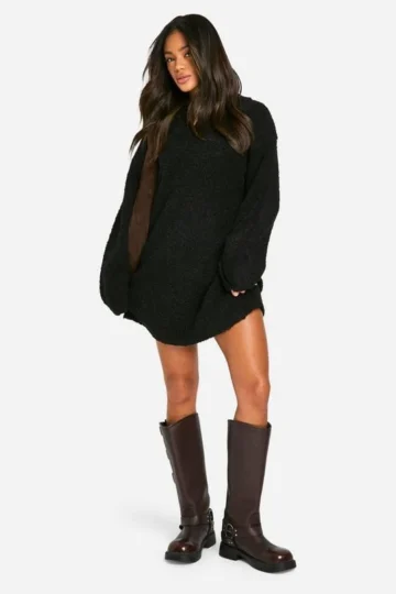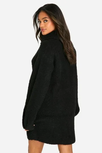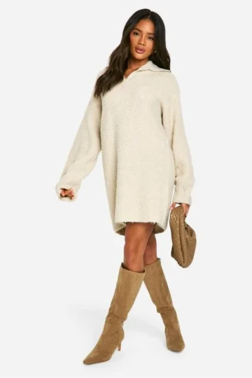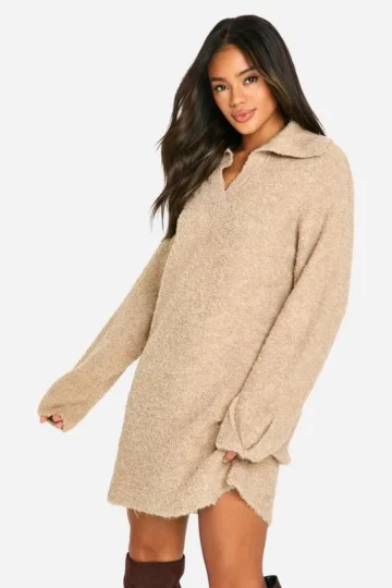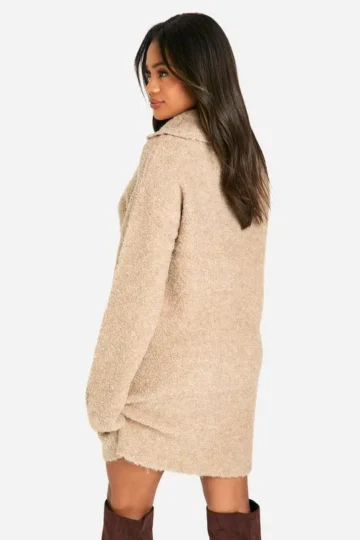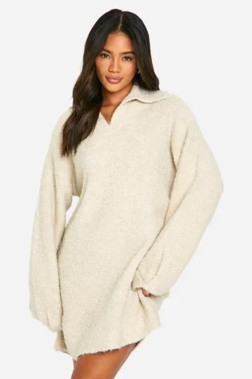 BOOHOO Borg Oversized Collar Detail Mini Sweater Dress