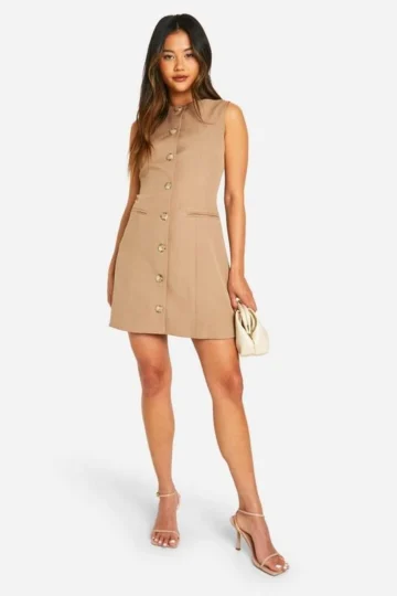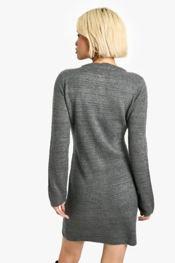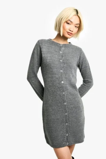 BOOHOO Boucle Knitted Button Down Mini Dress
