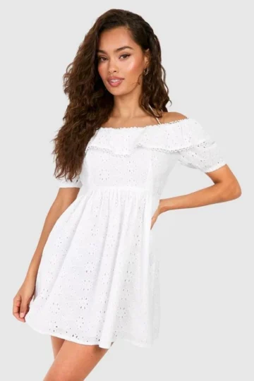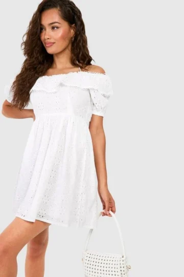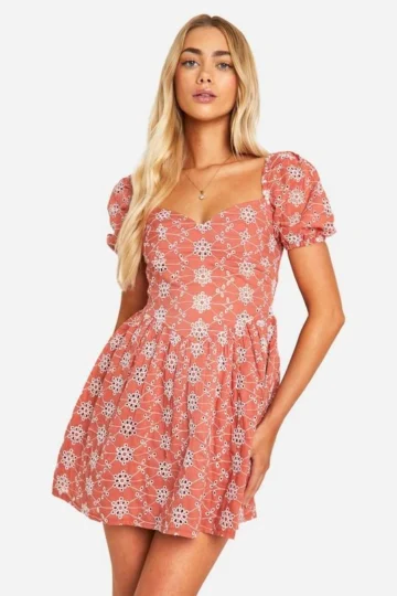 BOOHOO Broderie A-line Mini Dress