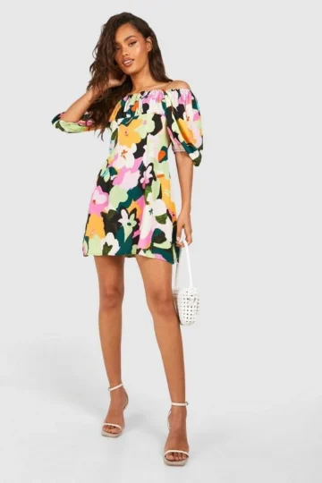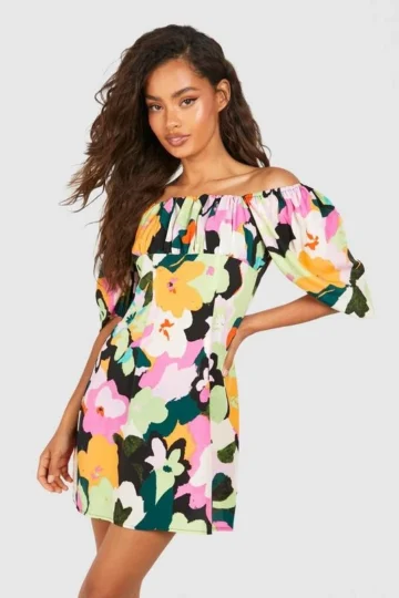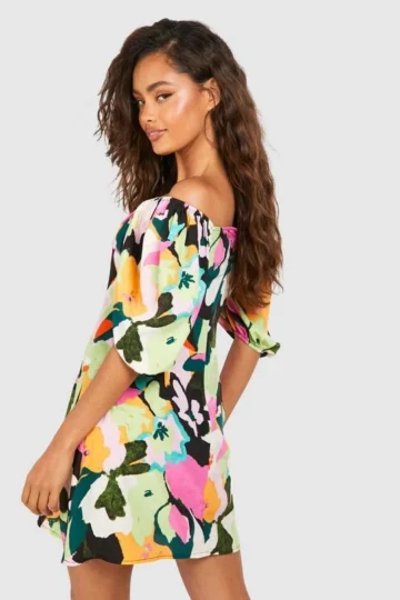 BOOHOO Bright Floral Puff Sleeve Smock Dress