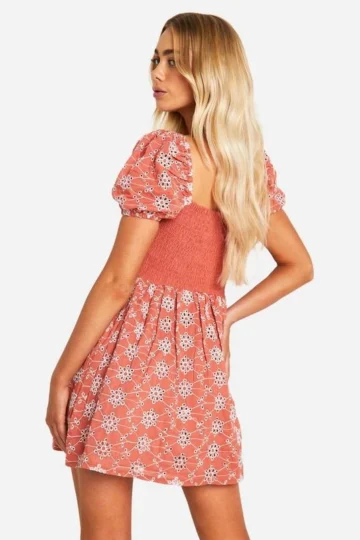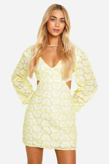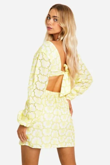 BOOHOO Broderie Tie Back Balloon Sleeve Mini Dress