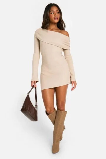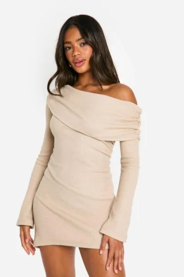 BOOHOO Brushed Rib Mini Long Sleeve Dress