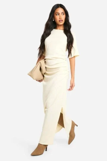 BOOHOO Brushed Rib Ruched Maxi Dress