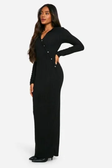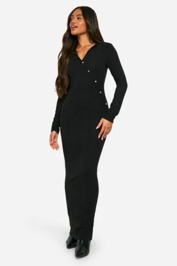 BOOHOO Brushed Rib Button Down Maxi Dress