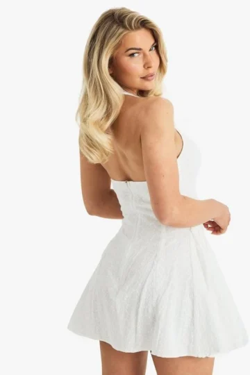 BOOHOO Broderie Lace Up Corset Detail Mini Dress