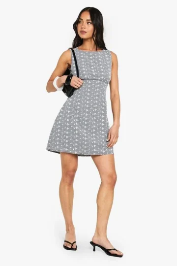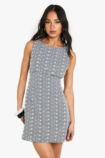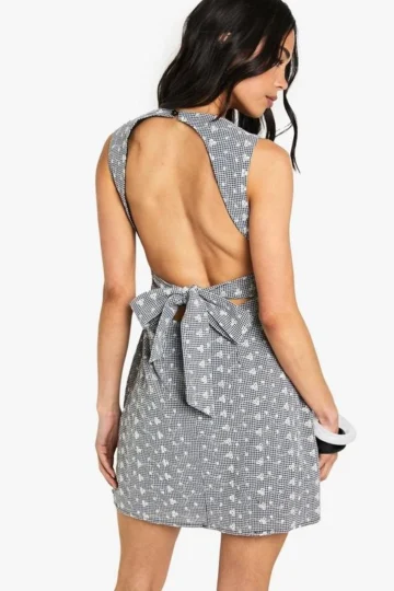 BOOHOO Broderie Gingham Tie Back Detail Shift Dress