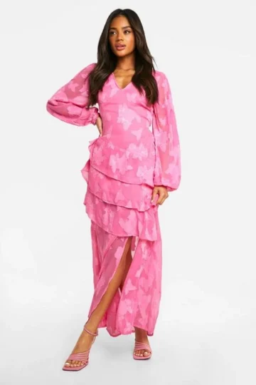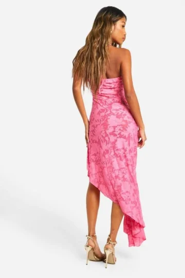 BOOHOO Burnout Floral Ruched Front Maxi Dress