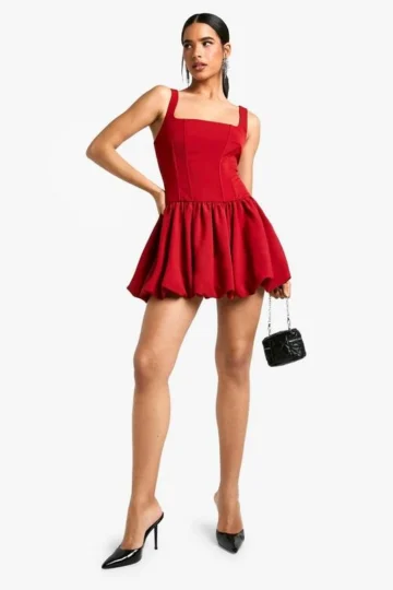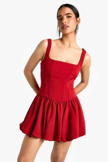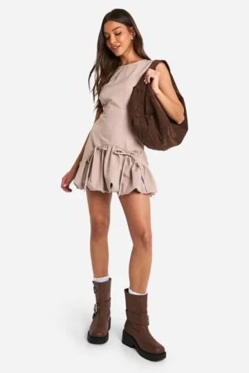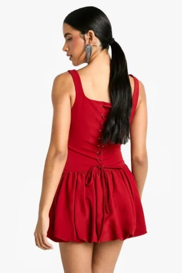 BOOHOO Bubble Hem Lace Up Mini Dresss