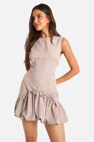 BOOHOO Bubble Hem Pinstripe Tailored Mini Dress