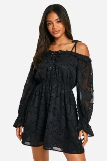 BOOHOO Burnout Floral Lace Up Front Mini Dress