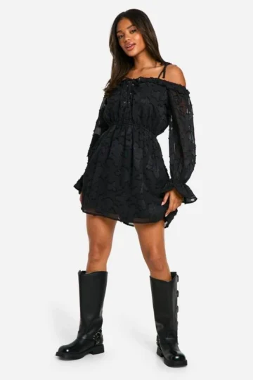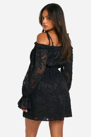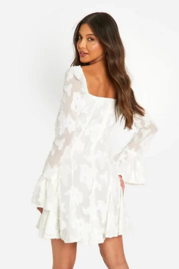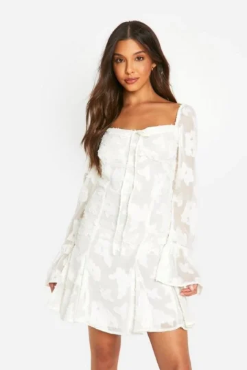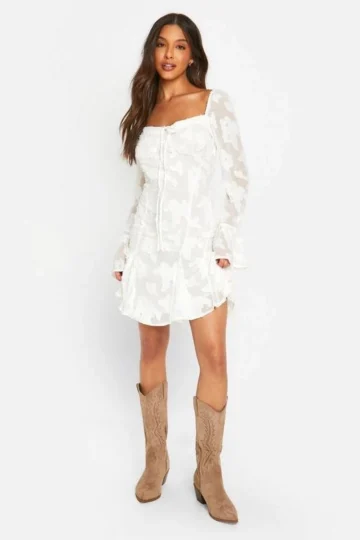 BOOHOO Burnout Floral Milkmaid Mini Dress