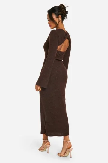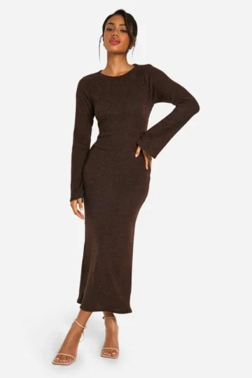 BOOHOO Brushed Rib Twist Back Midi Dress