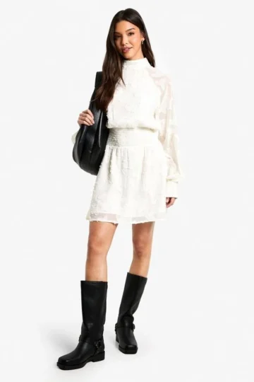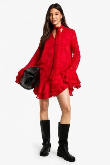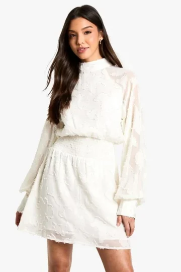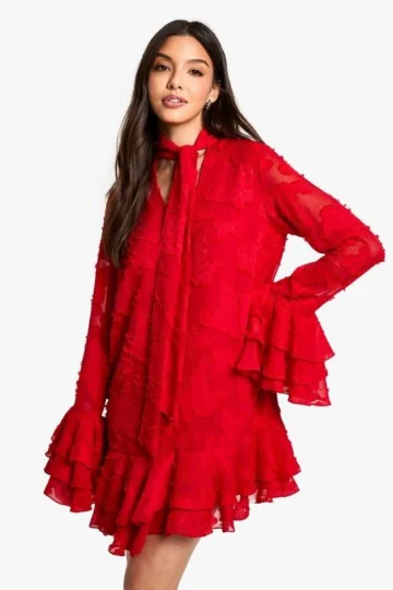 BOOHOO Burnout Floral Ruffle Smock Dress