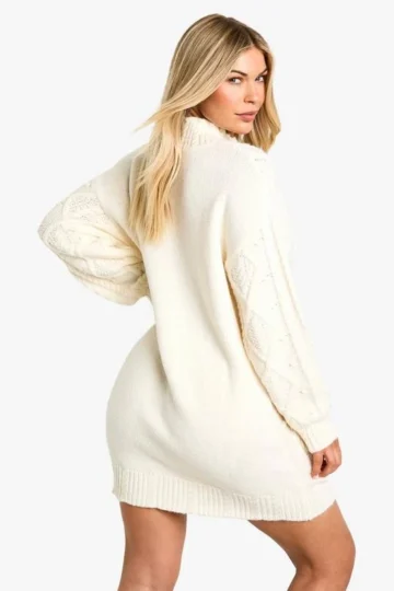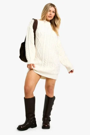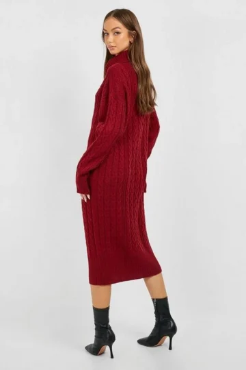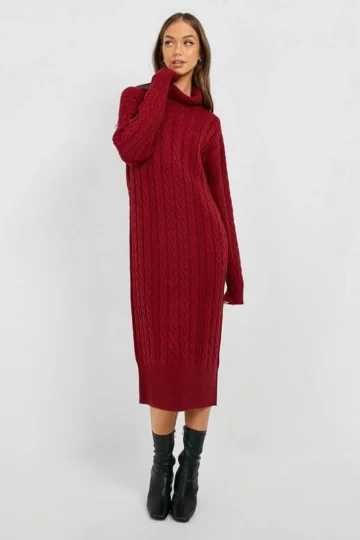 BOOHOO Cable Knit Turtleneck Midi Dress
