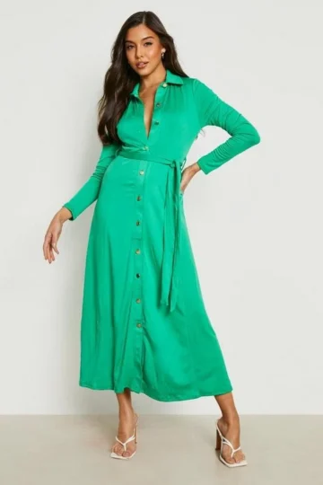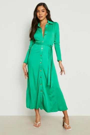BOOHOO Button Detail Belted Midi Shirt Dress