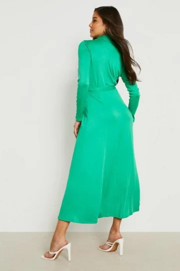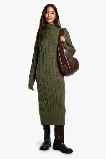 BOOHOO Cable Knit Roll Neck Midi Dress