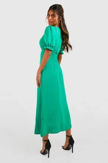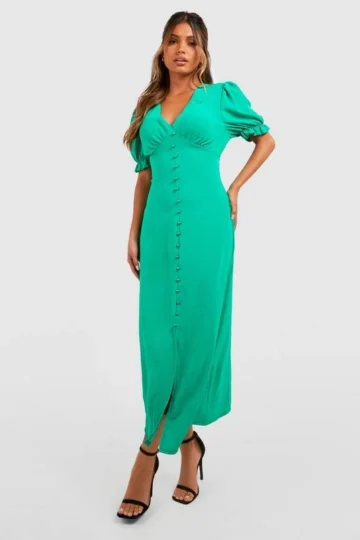 BOOHOO Button Detail Short Sleeve Midi Dress