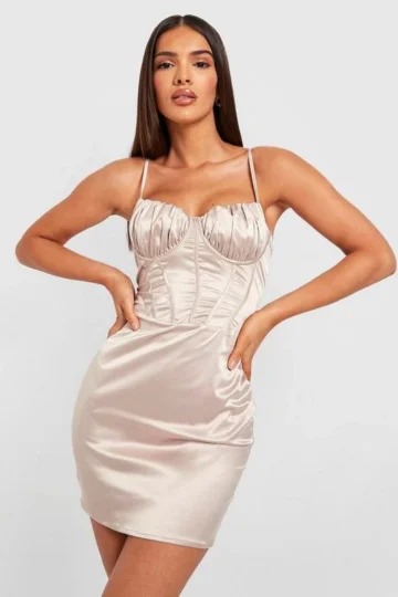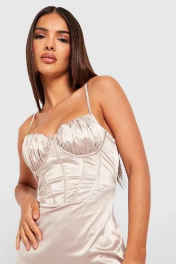 BOOHOO Bust Detail Corset Satin Mini Party Dress