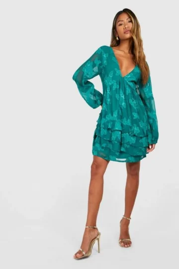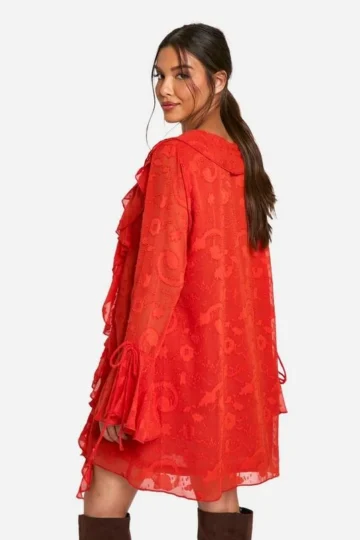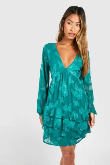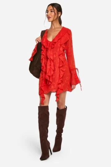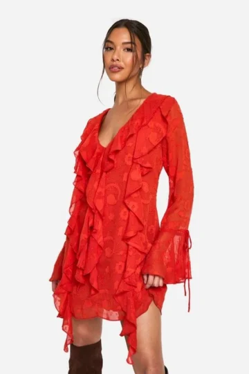 BOOHOO Burnout Paisley Ruffle Mini Dress