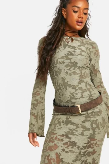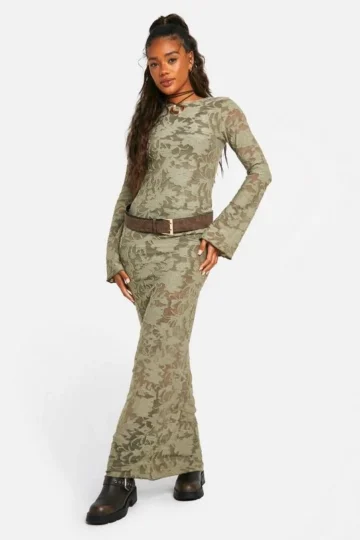 BOOHOO Burnout Mesh Flare Sleeve Maxi Dress
