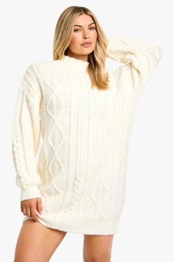 BOOHOO Cable Detail Knitted Mini Sweater Dress