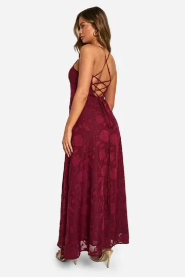 BOOHOO Burnout Floral Tie Back Maxi Dress