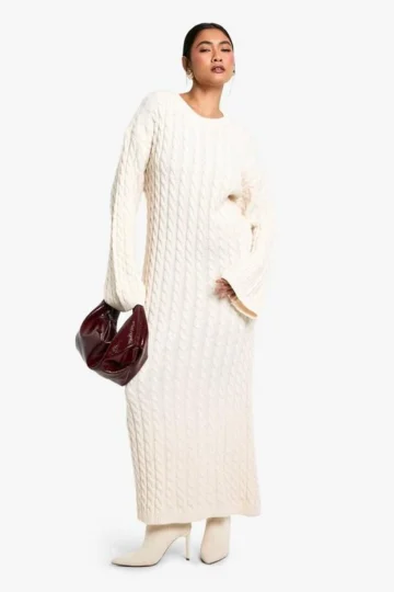 BOOHOO Cable Oversized Knitted Sweater Dress