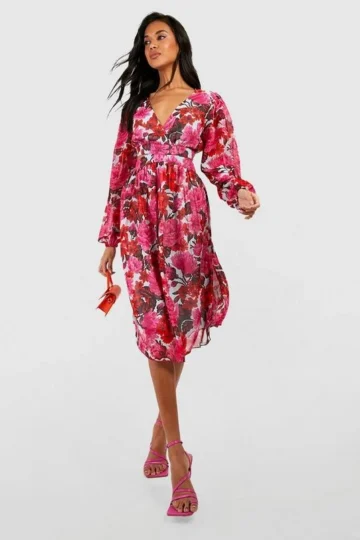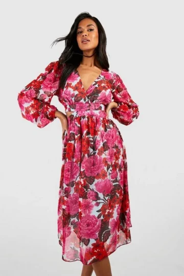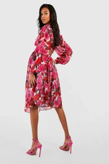 BOOHOO Chiffon Floral Cut Out Midi Dress