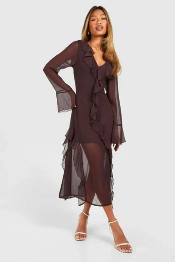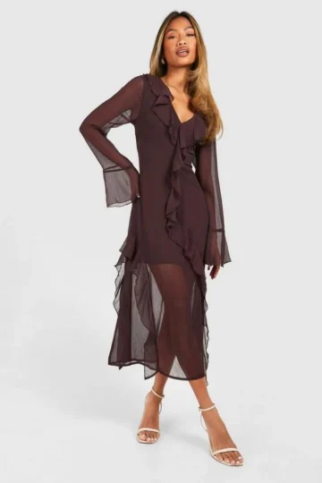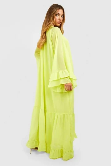 BOOHOO Chiffon Flare Sleeve Maxi Smock Dress