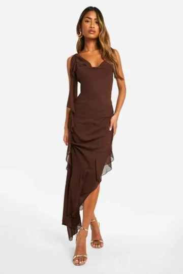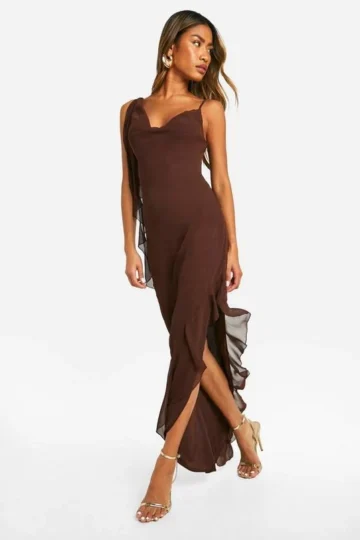 BOOHOO Chiffon Cowl Neck Maxi Dress