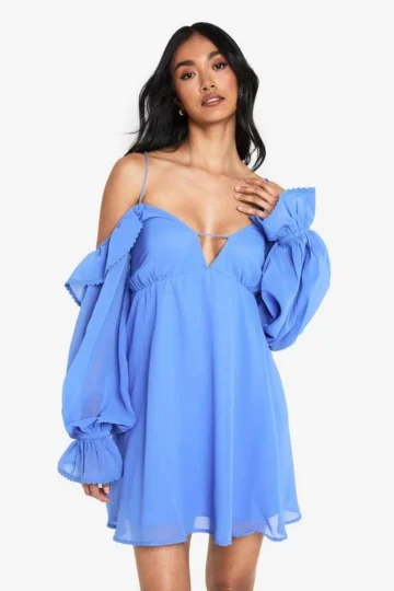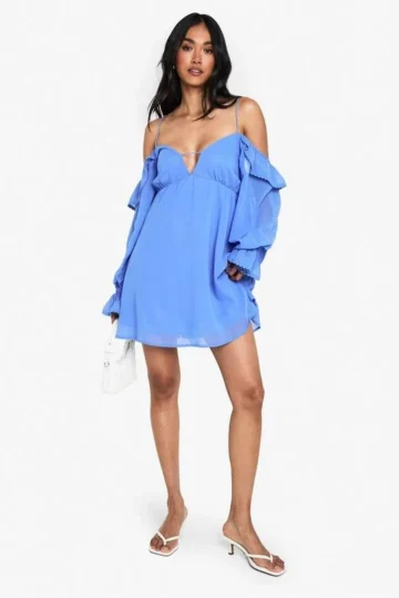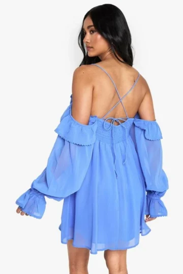 BOOHOO Chiffon Cold Shoulder Layered Mini Dress