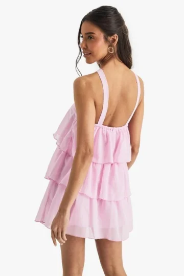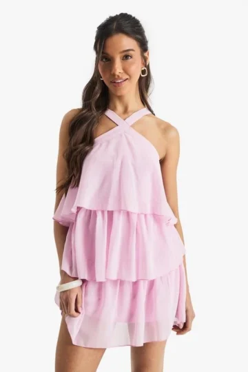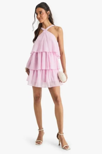 BOOHOO Chiffon Halterneck Layered Mini Dress